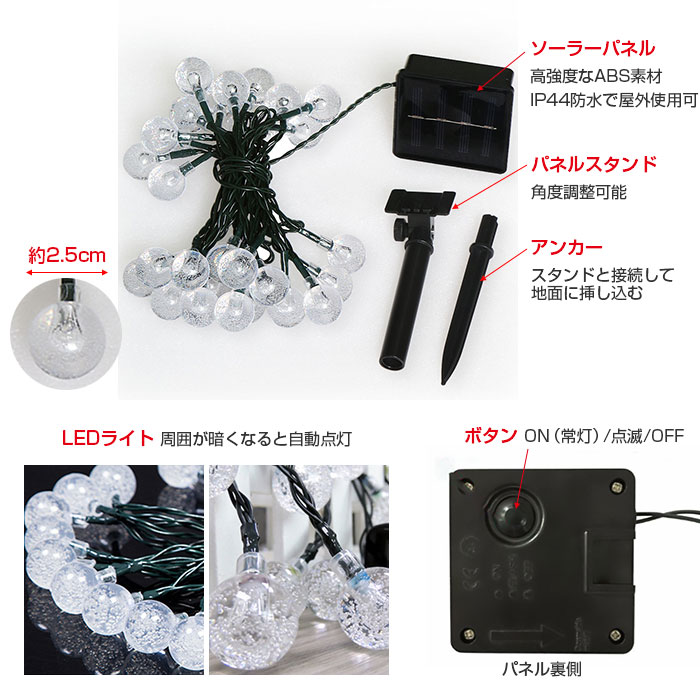 ソーラー充電式 LED イルミネーションライト 2個セット ストリングライト 30球 LED 直径2.5cm 長さ4.5m 太陽光 ガーデン クリスマス IP44防水 ◇LC-30LED-2SET