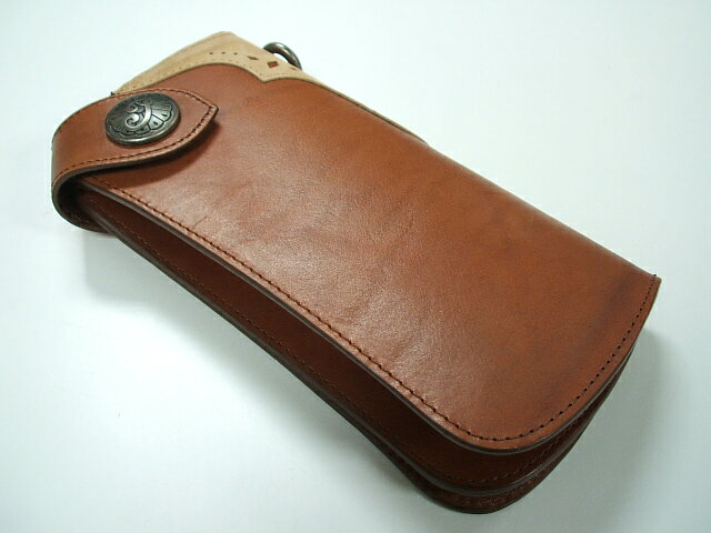 アメリカ産の牛革を使用し、インディアンのロゴ入りのボタンや、側面のヌバック調の切り替えデザインなどかなりこだわりの財布に仕上がっていますよ!! ウォレットチェーンも付けられるようになっていますので自分らしくアレンジしてみてください。